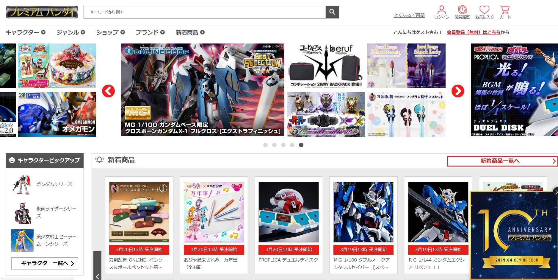 例えば、おもちゃのショップ、プレミアムバンダイを見てみましょう。2019/03/20時点の画面です。